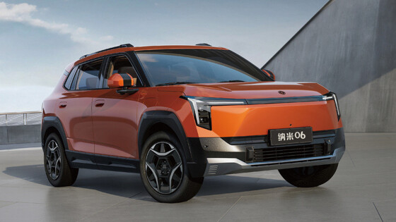 Если хэтчбек Nammi 01/Dongfeng Box имеет нарочито милый облик, то кроссовер Nammi 06, наоборот, получил агрессивный дизайн. Паркетнику достались внушительный пластиковый обвес, «клыкастые» светодиодные фары и задние фонари, на крыше есть рейлинги. Отдельных картинок интерьера пока нет, но и на имеющихся изображениях видно, что, как и у «единички», в салоне установлен крупный планшет мультимедиа.