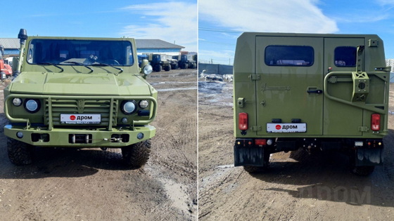 Автомобиль из Иркутска без брони, с полным пакетом документов, включая ПТС и СТС. Он выпущен в 2013 году, но на одометре всего 18,7 тысячи километров. Есть типичные для военных машин «фишки» вроде светомаскировки, а в кузове установлены лавки вдоль бортов без ремней безопасности. Под стать и внешность: защитный цвет, стальные бамперы, сзади кронштейн для запаски, спереди кенгурин.