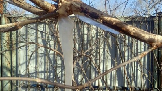 По утрам на городских деревьях можно увидеть сосульки. Особенно часто они попадаются на кленах.