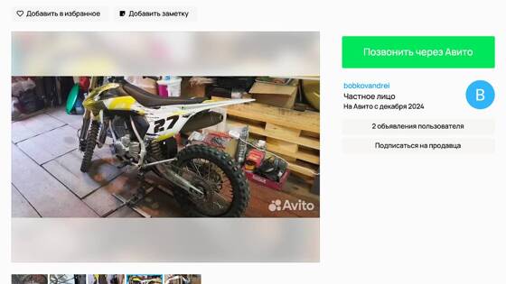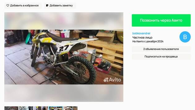 Речь идет о китайском мотоцикле марки GR2, выпущенном в 2021 году. Согласно информации в объявлении, модель 250 Enduro OPTIMUM имеет бензиновый двигатель мощностью 21 лошадиную силу, а ее пробег составляет всего 173 километра. «Состояние отличное, подготовлен к сезону. Сел и поехал», — уверяет россиянин.