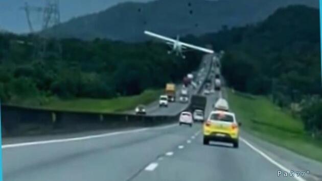 Легкомоторный самолёт совершил вынужденную посадку на автомагистрали BR-101, в городе Гарува (штат Санта-Катарина, Бразилия) около полудня, в прошлую субботу, 5 апреля.