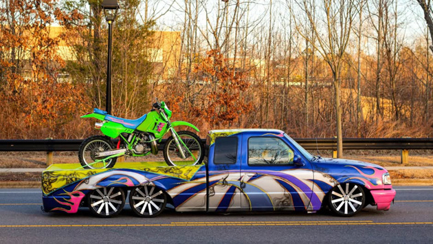 Старый Ford Ranger превратили в очень длинный и яркий пикап
