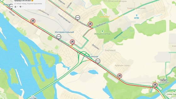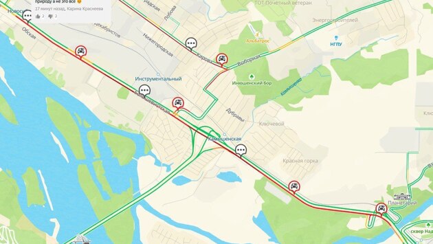 «Затор начинается от Речного вокзала и тянется до «Разъезда Иня». Движению мешают аварии: первая напротив автосалона на Большевистской, вторая — на перекрестке Большевистской и Выборной, третья — на перекрестке Выборной с Кирова. Еще два ДТП на Красной горке и на дороге к планетарию», — сообщили горожане в соцсетях.