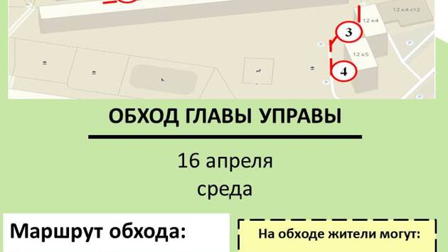 Обход главы управы района Нагатино-Садовники города Москвы пройдёт 16 апреля 2025 по Нагатинской набережной