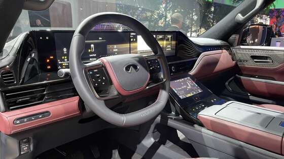 Интерьер нового QX80 поражает роскошным красно-черным оформлением. В автомобиле предусмотрена высококачественная аудиосистема Klipsch с 24 динамиками. Первые два ряда сидений получат функции подогрева, вентиляции и массажа, тогда как третий ряд будет поддерживать только функцию подогрева.