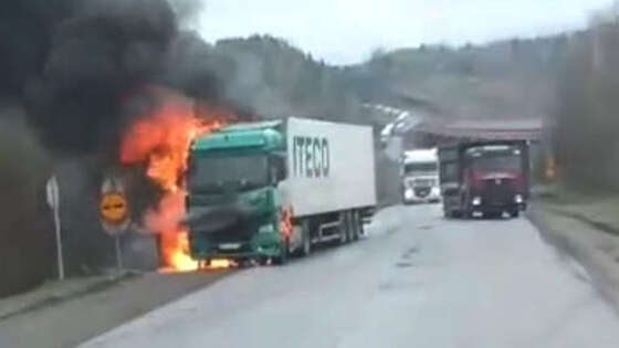 В Челябинской области вспыхнувшая фура затруднила движение по трассе М-5