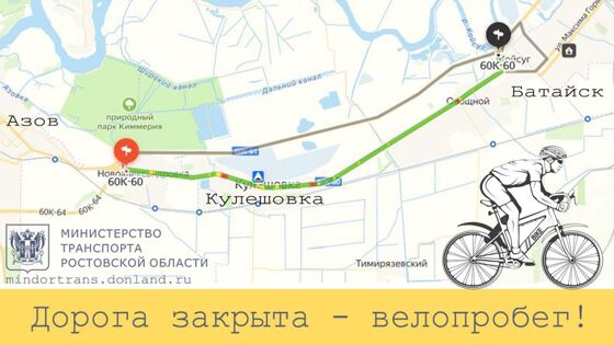 – Объезд будет осуществляться по автодороге «Ростов-на-Дону (от магистрали «Дон») – Азов (старое направление)». Просим учитывать это при планировании поездок в направлении Азова, Батайска и близлежащих поселений, – говорится в сообщении.