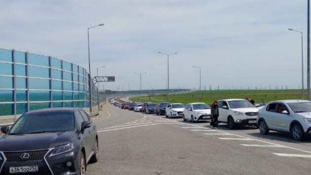 В связи с интенсивным потоком туристов к Крымскому мосту в майские праздники, на подъездах со стороны Краснодарского края образовались значительные пробки.