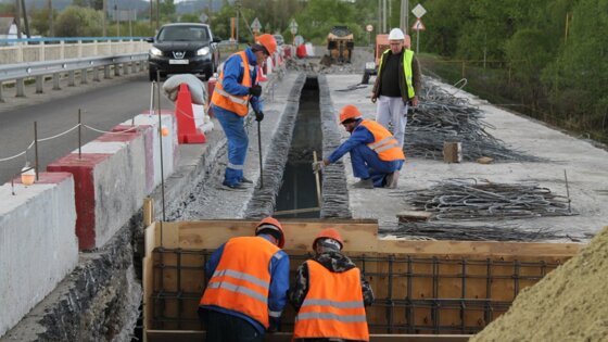 Сейчас подрядчик разбирает защитный слой на пролетном строении моста, чтобы затем восстановить его. Также специалисты переустраивают шкафную стенку сооружения. На время работ организовали реверсивное движение.