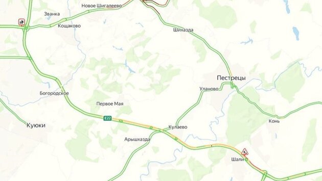 Традиционно заторы образовались в Сокурах, Новом Шагалеево и Шали. Протяженность пробок достигает 3,5-9,6 км.