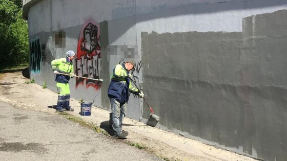 Работники МБУ «Пензавтодор» покрасили подпорные стены сооружения, чтобы надписи и рисунки исчезли.