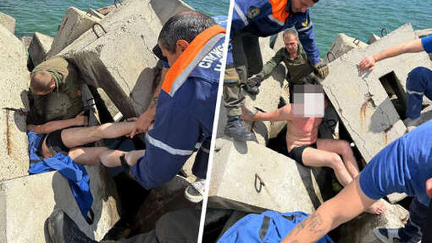 В Новороссийске попытка местного жителя искупаться в районе базы технического обслуживания флота закончилась вызовом спасателей. Об этом сообщил начальник Службы спасения города Алексей Одеров в своем Telegram-канале. По словам сотрудника экстренных служб, нетрезвый мужчина хотел искупаться в море и пытался пробраться к воде через гексабиты (защитные сооружения), но по пути уронил телефон. До купания дело так и не дошло: мужчина полез за гаджетом и застрял между блоками. Выбраться из "ловушки" самостоятельно он не смог, на помощь приехали работники службы спасения. Одеров поделился кадрами, на которых видно, как раздевшийся до трусов потерпевший зафиксировался вверх ногами между бетонных блоков. "Спасатели выехали на место и при помощи физической силы извлекли пострадавшего из заточения", - поделился глава городского ведомства. Одеров предостерег местных жителей от попыток купания в состоянии алкогольного опьянения, подчеркнув, что "это опасно".