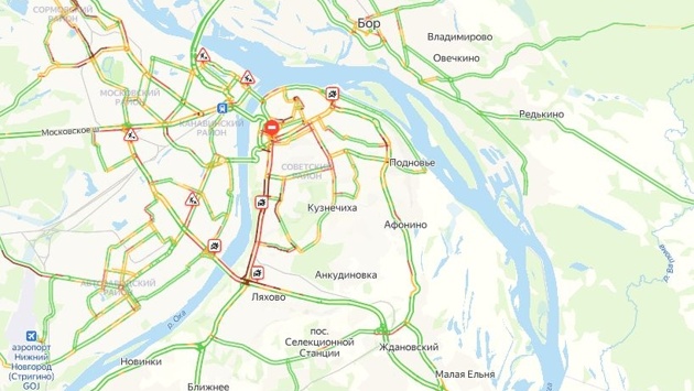 Заторы образовались и на Мызинском мосту, где произошло две аварии.В центре города пробки наблюдаются на улицах Варварской, Горького, Звездинке, Ванеева, Малой Покровской и ближе к Канавинкому мосту на Нижне-Волжской набережной.