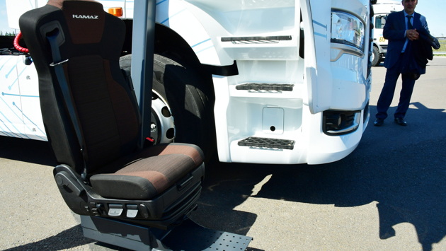 КамАЗ показал видео тягача без педалей с креслом-манипулятором