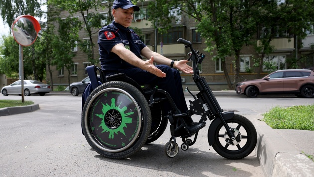 Мотор и электрический аккумулятор позволяют инвалидной коляске разгоняться до 20 километров в час