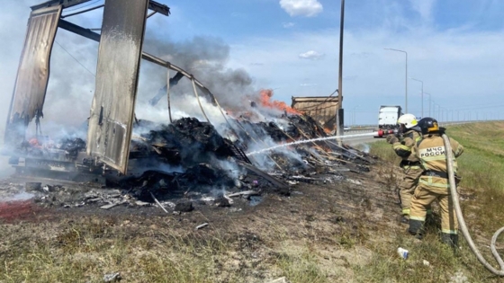 В Волгоградской области на трассе потушили загоревшийся КамАЗ