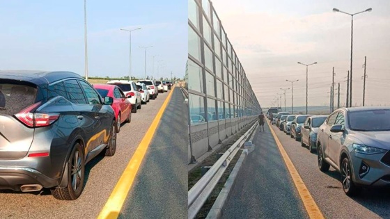 Двухчасовая очередь из автомобилей скопилась на подходе к мосту в Крым. По данным на 8 часов утра со стороны Тамани ожидают досмотра более 500 автомобилей.