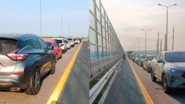 Двухчасовая очередь из автомобилей скопилась на подходе к мосту в Крым