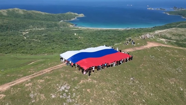 300-метровый флаг Российской Федерации развернули ребята из 18 стран в честь Дня России на полуострове Гамова, сообщил центр "Молодежь Приморья". Масштабную акцию провели команда "Молодежи Приморья", участники Международного клуба дружбы и студенты ДВФУ.