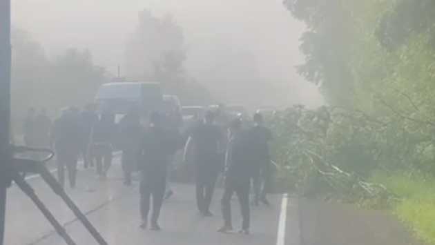 Упавшее дерево перекрыло движение транспорта рядом с Кемеровом