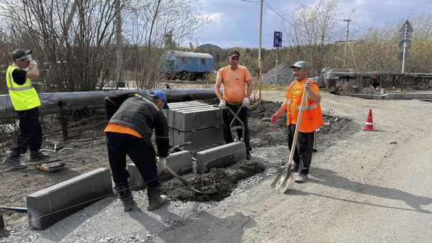 Салехардские дорожники ремонтируют дорогу в районе промзоны