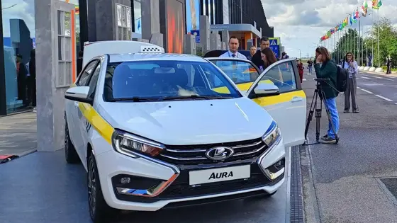 Такси-версия Lada Aura дебютировала на ПМЭФНа стенде АВТОВАЗа в рамках Петербургского международного экономического форума представлена специальная версия бизнес-седана Lada Aura, предназначенная для таксопарков. Автомобиль выделяется фирменной атрибутикой: белый кузов с желтой полосой по бортам, черными «шашечками» на дверях и традиционным световым фонарем на крыше. Интересно, что, вопреки ожиданиям о бюджетной комплектации для такси, демонстрируемый экземпляр получил премиальную отделку салона кожей и оснащен крупным экраном мультимедийной системы. Напомним, что серийные продажи Aura стартовали еще в ноябре 2024 года, а такси-модификация может стать очередным шагом в продвижении модели на корпоративном рынке. Параллельно АВТОВАЗ готовит к премьере на форуме другие важные новинки – кроссовер класса В+ на платформе Vesta и еще одну модель, которая пока держится в секрете – презентация ожидается в ближайшие часы. Петербургский международный экономический форум (ПМЭФ) проходит в Санкт-Петербурге с 18 по 21 июня.