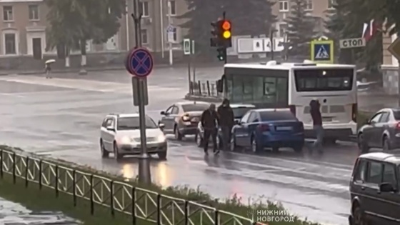 Легковушки столкнулись на одном из перекрестков в Сарове, но один из участников ДТП решил скрыться. Видео с его побегом опубликовано в Telegram-канале «Нижний Новгород БЕЗ ЦЕНЗУРЫ».