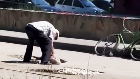 Видео, на котором пожилой мужчина щебнем из мешка засыпает ямы на дороге рядом с поликлиникой, было опубликовано в сообществе Балахна Live в социальной сети «ВКонтакте».