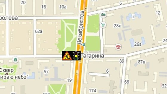 В Казани светофор на перекрестке Декабристов и Гагарина временно работает в режиме мигания