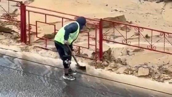На 92% отремонтированная Новобульварная не выдержала наплыва стихии. Очевидец поделился видео, на которых запечатлена размытая улица.