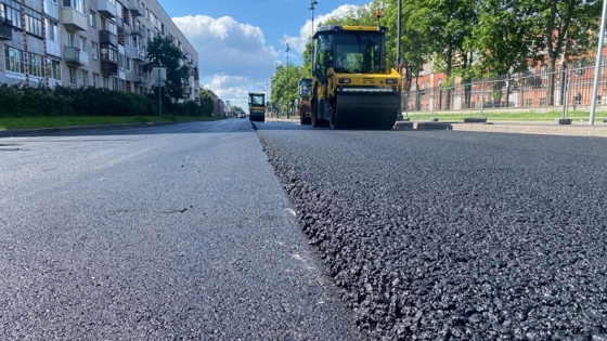 На полуторакилометровом участке специалисты уложат более 25 тыс. кв. м нового покрытия на проезжей части и тротуарах. К настоящему времени уже завершено фрезерование изношенного покрытия и началась укладка верхнего и выравнивающего слоя асфальтобетона на проезжей части.