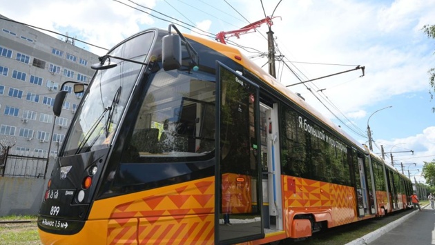 В Екатеринбурге в преддверии международной выставки "Иннопром" вышел на линию первый в стране пятисекционный трамвай вместимостью более 400 пассажиров.