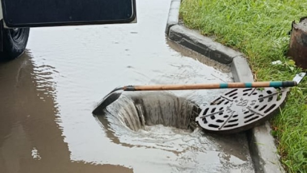Причина введения особого режима в обрушении приемного оголовка и лотковой части ливневого коллектора. Кроме того, рядом с 11-этажной на Герцена размыло проезжую часть, поэтому она обвалилась.