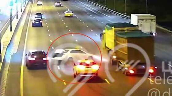 На МКАД на видео попало, как легковушка вращалась на дороге, врезаясь в авто