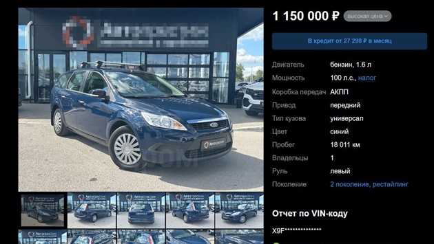 Как выяснила "Российская газета", в Волгограде на продажу выставили 15-летний Ford Focus с пробегом в 18 тысяч км. За такой автомобиль просят 1 150 000 рублей.