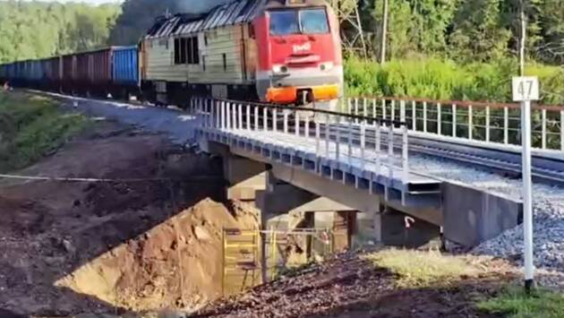 Подорванный в Курской области путепровод на участке Остапово — Михайловский Рудник восстановили в рекордные сроки. Об этом сообщает РЖД.