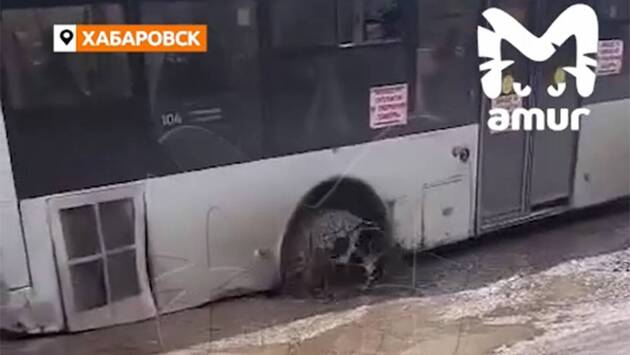 В Хабаровске два автобуса с пассажирами провалились в ямы на дороге. Происшествие в российском городе сняли на видео, которое опубликовал Telegram-канал Amur Mash.