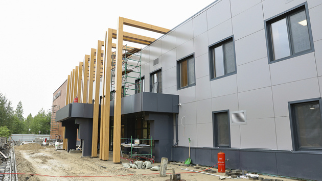 Рабочие усилили каркас и отремонтировали несущие конструкции. Также они установили современные стеновые панели, дверные и оконные блоки.
