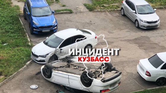В Кемерове около ТРЦ "Спутник" белый автомобиль завалился на крышу после опасной погони. За все нарушения молодому водителю могут грозить штрафы на общую сумму порядка 80 000 рублей.