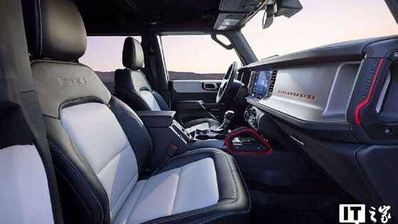 На двери багажника установлено запасное колесо с белым ободом и красным логотипом Bronco. Интерьер автомобиля оформлен в стиле Mustang 60th Anniversary Edition с белой строчкой, кожаными сиденьями и символикой 60 на подголовниках. Также представлены обновленные подлокотники и эксклюзивные элементы отделки.
