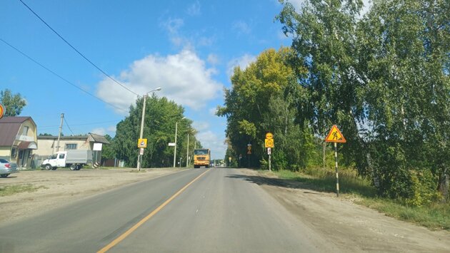 Уже уложен выравнивающий слой асфальтобетона, сейчас идет устройство тротуара. Закончен монтаж остановочного кармана и павильона, обновлены водопропускные трубы.