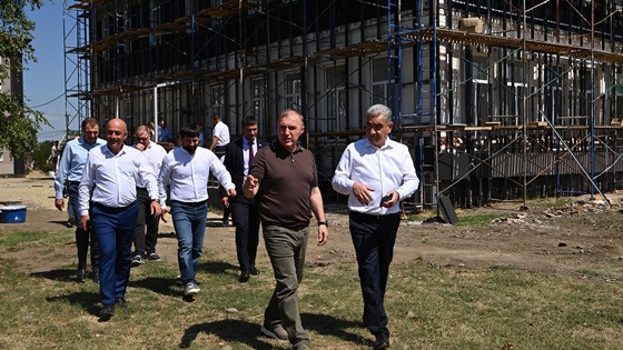 Далее в ауле Кошехабль руководитель региона посетил стройплощадку, где возводится новый детский сад "Нальмэс" на 100 мест. Строительство ДОУ ведется в рамках госпрограммы "Комплексное развитие сельских территорий". На эти цели будет направленно 292,9 миллиона рублей. Окончание строительства запланировано на 2026 год. В общении с руководством подрядной организации глава Адыгеи сделал акцент на качестве и сроках работ.