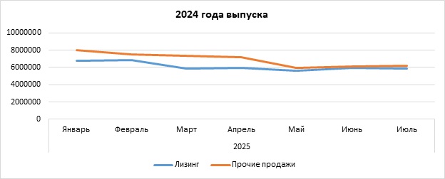 К июлю текущего года цены на продаваемые лизинговыми компаниями тягачи 2022 года выпуска снизились до 4,0 млн руб., 2023 года выпуска — до 4,8 млн руб., 2024 года выпуска — до 5,8 млн руб. Стоимость тягачей, продаваемых по иным каналам, также уменьшилась до 4,2 млн руб., 5,9 млн руб. и 6,2 млн. руб. соответственно. Таким образом, в большинстве случаев лизинговые компании продают подержанные тягачи дешевле, чем остальные участники рынка.