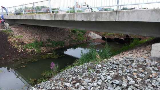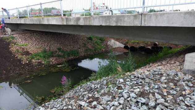 Мост длиной более 206 метров уже претерпел изменения. Были заменены плиты проезжей части и тротуаров на трех пролетах, а также установлены 16 железобетонных балок на четырех пролетах. Сейчас подрядчик занимается укладкой выравнивающего слоя бетона, ремонтом опор и укреплением конусов с помощью монолитного бетона. Планируется установить новое барьерное и перильное ограждение.