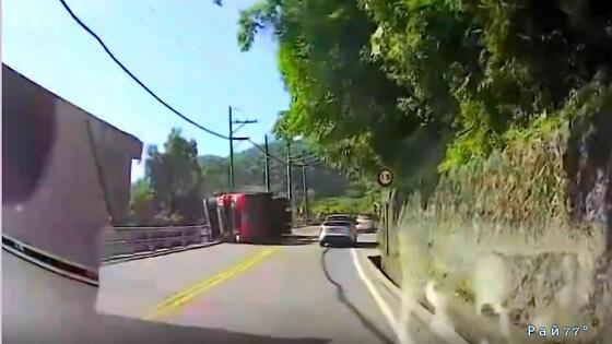 Падение грузовика на повороте дороги попало в объектив видеорегистратора