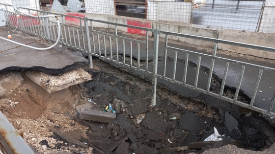 Напомним, ранее жители пожаловались в соцсетях на гигантские ямы, которые образовались над канализационным коллектором. По их словам, они возникли в течение года, и их до сих пор не устранили. Сейчас места провалов огорожены, но никаких работ там не ведется.