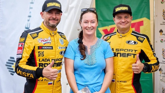 В церемонии награждения приняли участие пилоты гоночной команды - Михаил Митяев и руководитель команды в классе "Супер-продакшн", шестнадцатикратный чемпион России Кирилл Ладыгин.