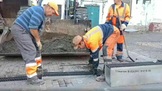 Часть бригад задействована на ремонте коллекторных и дождеприемных колодцев. Выполняется замена кирпичной кладки, поскольку из-за ее разрушения проседает асфальт и происходит засорение ливневок. Также устанавливаются стеновые кольца, плиты перекрытия и регулируется уровень горловины люков. Данная работа выполнялась на улицах Калинина, Воровского, Лепсе.
