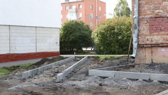 Ремонтные работы начались во дворе дома №32 на улице Шахтеров в Рудничном районе. В настоящее время рабочие демонтируют старый бетонный периметр здания и готовят территорию для укладки новых пешеходных дорожек и дороги.
