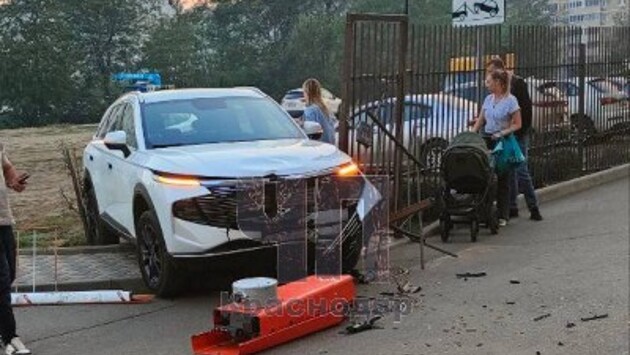 Женщина посадила ребенка к себе на колени и доверила ему руль. В итоге юный водитель отправил кроссовер матери прямиком в шлагбаум и едва не сбил прохожую с коляской. К счастью, девушка успела отойти от падающей конструкции.